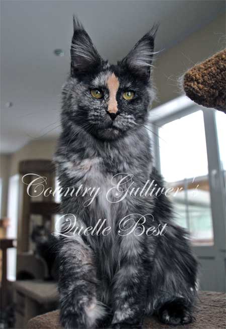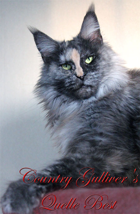 черепаховый дымчатый ( fs ) ![]() Quelle ( Элька, Эля, Элечка) - зеленоглазая дымная красивица крепкая, прекрасно одетая, с красивыми рельефными формами головы и замечательным мягким характером Родители: Кот мейн кун Конан Босс и Кошка мейн кун Афина |