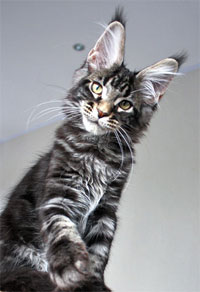 Роман приехал к нам из германского питомника с многолетним опытом разведения мейн кунов - Langstteich's. Задорный характер мальчишки, его неуёмная живая энергия и какой-то внутренний магнетизм покорили нас сразу. А сейчас шустрый озорник превратился в степенного мейн куна с любимым мной взглядом дикого хищника и, на контрасте с ним, пластичным и мягким характером. |