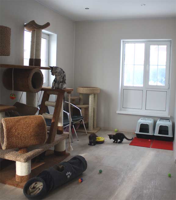 помещения, в которых живут и растут наши мейн куны оборудованы специальной