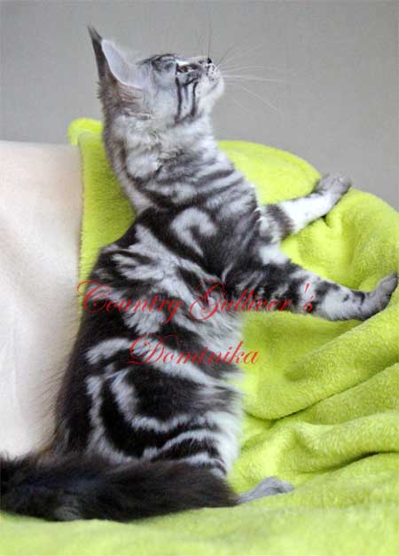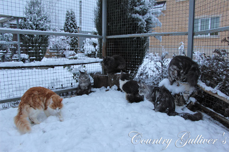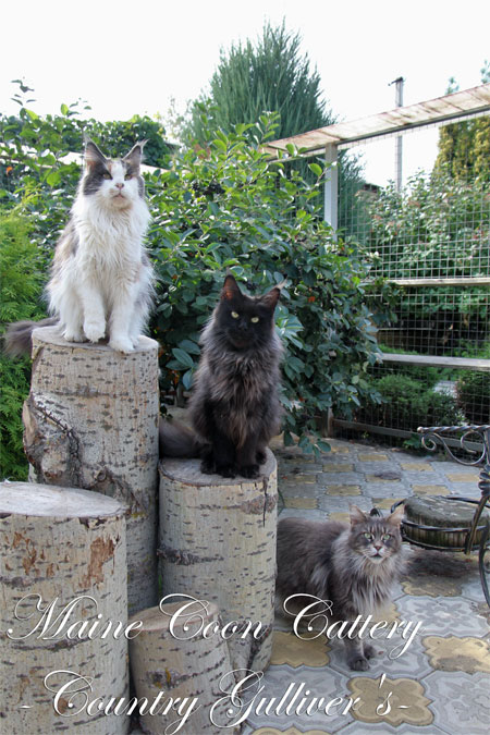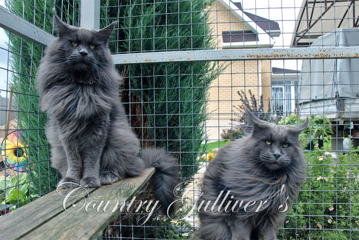 Мейн куны нашего разведения - это сильные красивые кошки, с гипнотическим взглядом Wild Look, с огромными ушами, с мускулистым длинным корпусом, с тяжелой длинной коробкой и правильным профилем. Многочисленные победы наших кунов на выставках , множественные призы и награды, тесное сотрудничество с заграничными питомниками, замечательные отзывы экспертов и фелинологов о мейн кунах нашего разведения по всему миру - всё это является отличной оценкой экстерьера мейн кунов из питомника Страна Гулливеров. Ну и конечно, Мейн куны из Страны Гулливеров - это прекрасные гармоничные кошки, наделенные грацией и обликом дикого зверя, завораживающей пластикой движений, необычайным умом и добротой к окружающим! |